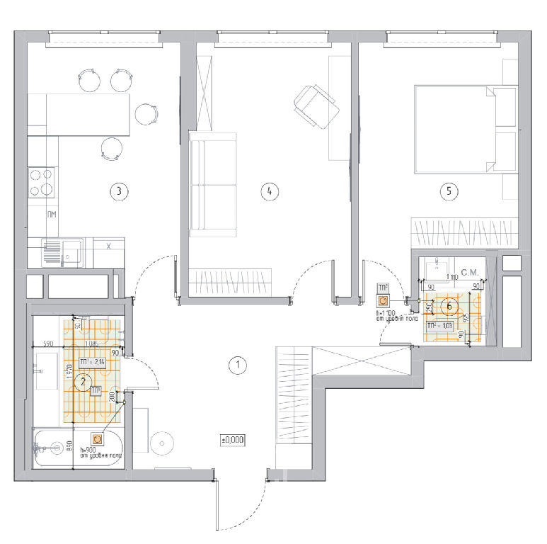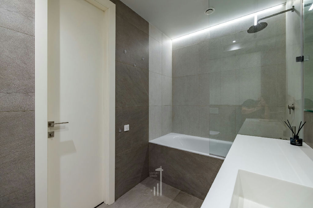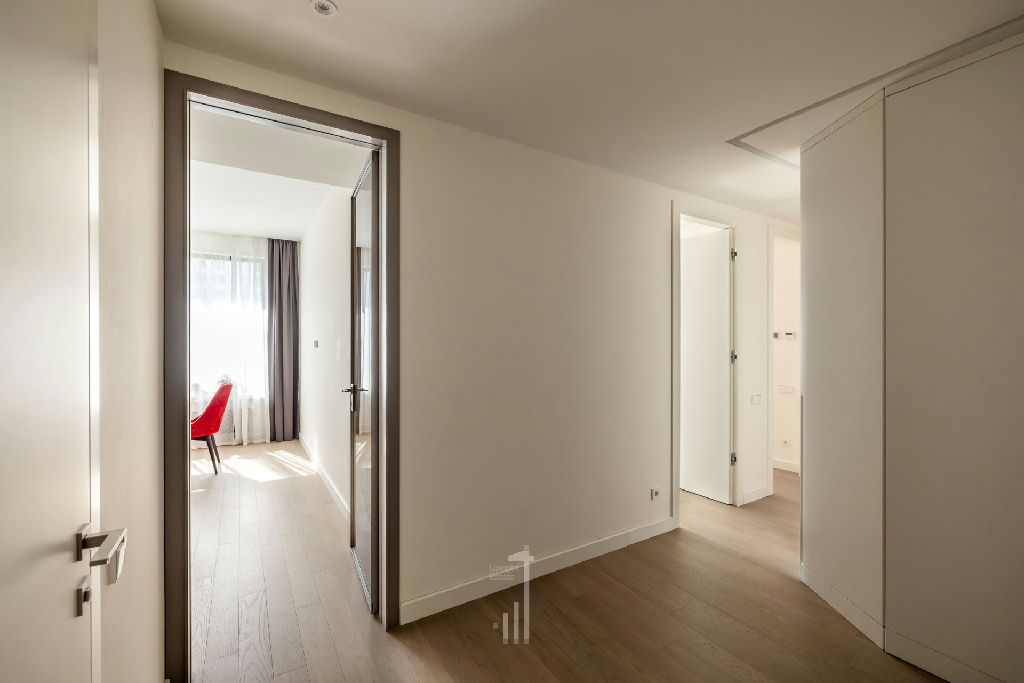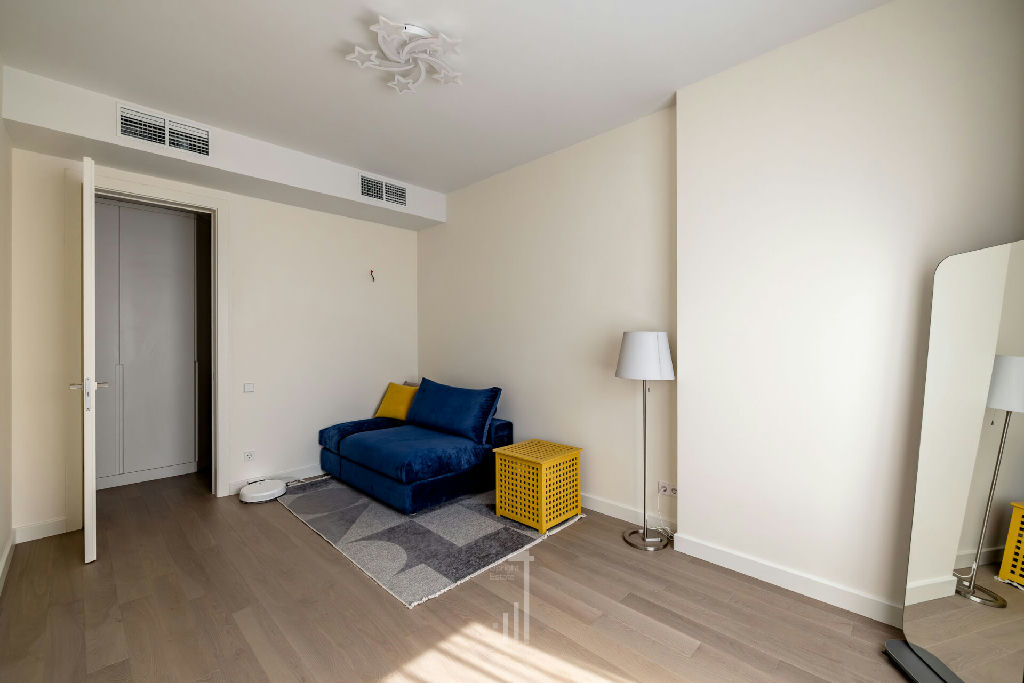 покрашенные стены, инженерная доска из натурального дуба, потолок гкл (никаких натяжных потолков!), во всех помещениях разведена канальная система кондиционирования (фанкойл), теплые полы, высокие межкомнатные двери 2,4 метра, много мест для хранения вещей.