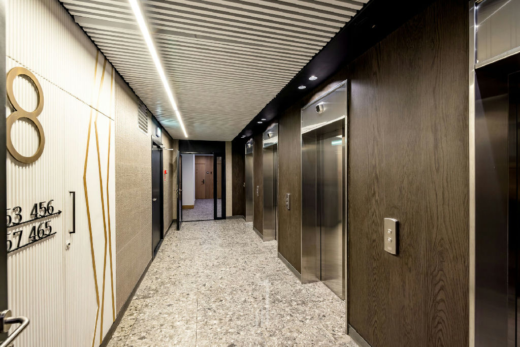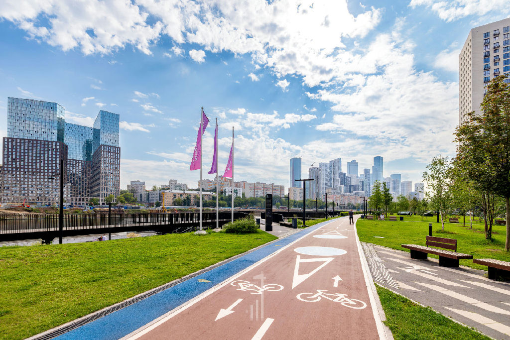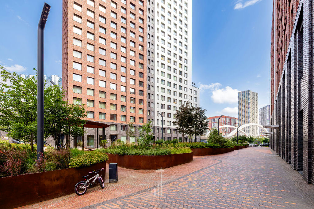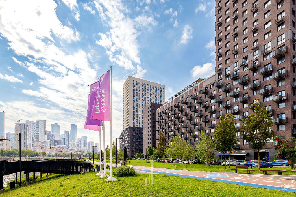 Закрытая внутренняя территория ЖК с детскими и спортивной площадками, двор без машин, есть отдельный выход сразу на набережную. На первых этажах - магазины, кафе, сфера услуг и пр.